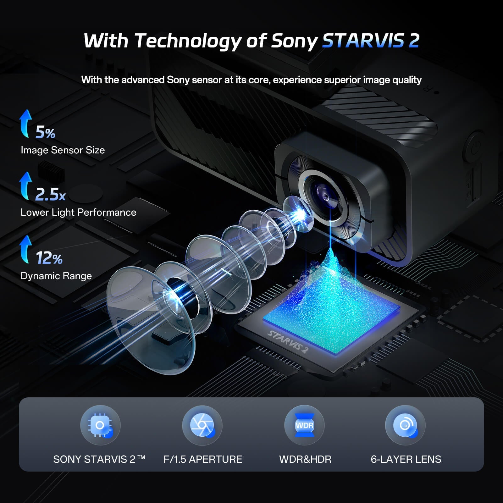 · STARVIS 2 Sensor & AI Night Vision: Image sensor with technology of STARVIS developed by Sony delivers 4x greater low-light sensitivity. Outperforms conventional night vision in all scenarios, from dimly lit urban streets to pitch-black rural roads and underground garages, capturing full-color night vision in starlight. (Hardwire kit needed)