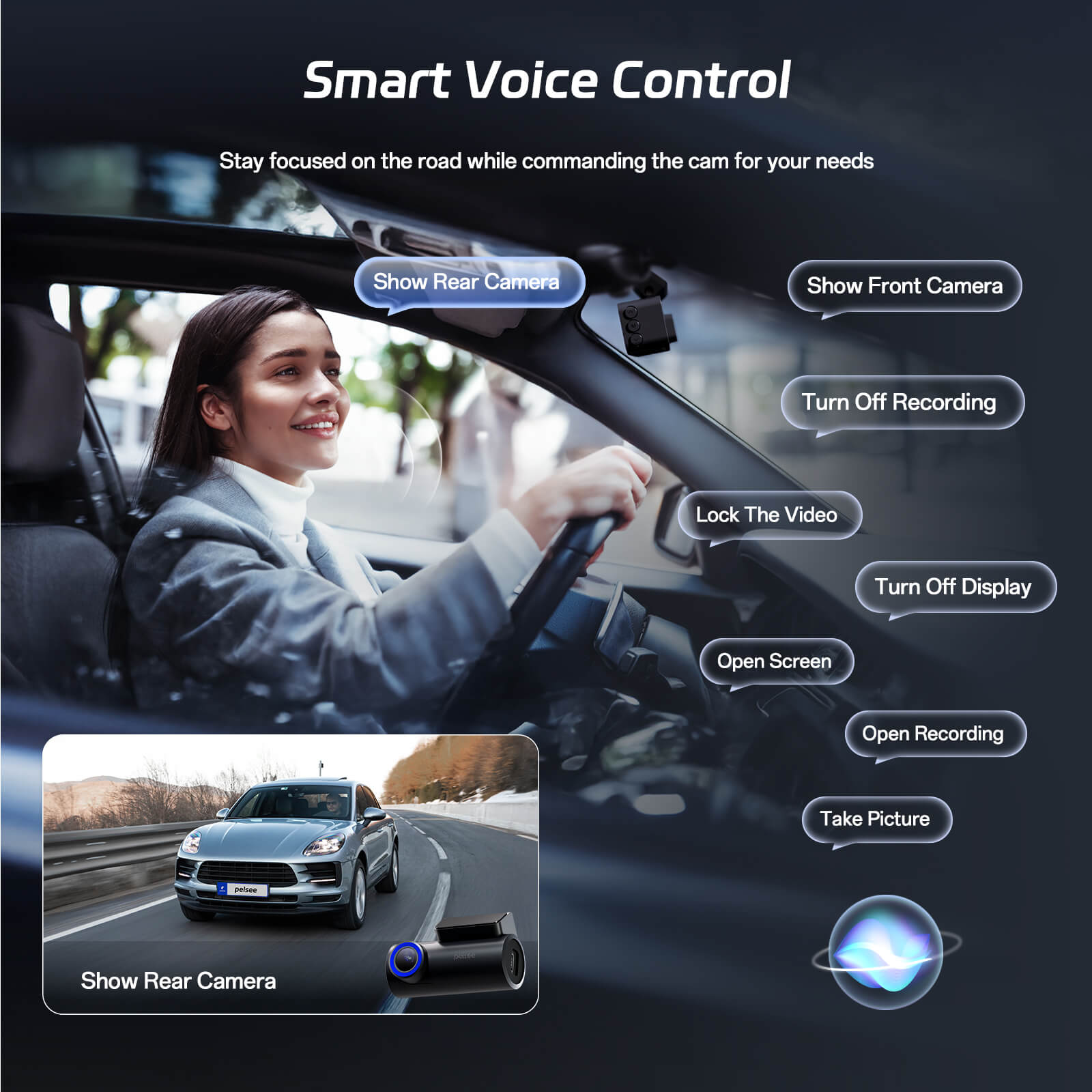 · Hands-free Voice Control: "Lock video!" Noise-canceling mics ensure accurate response even with road noise. 8 customizable voice commands enable true hands-free operation. Essential for dash cam operation while keeping hands on the wheel, snap photos, or start recording while driving. Safer control for car camera systems.