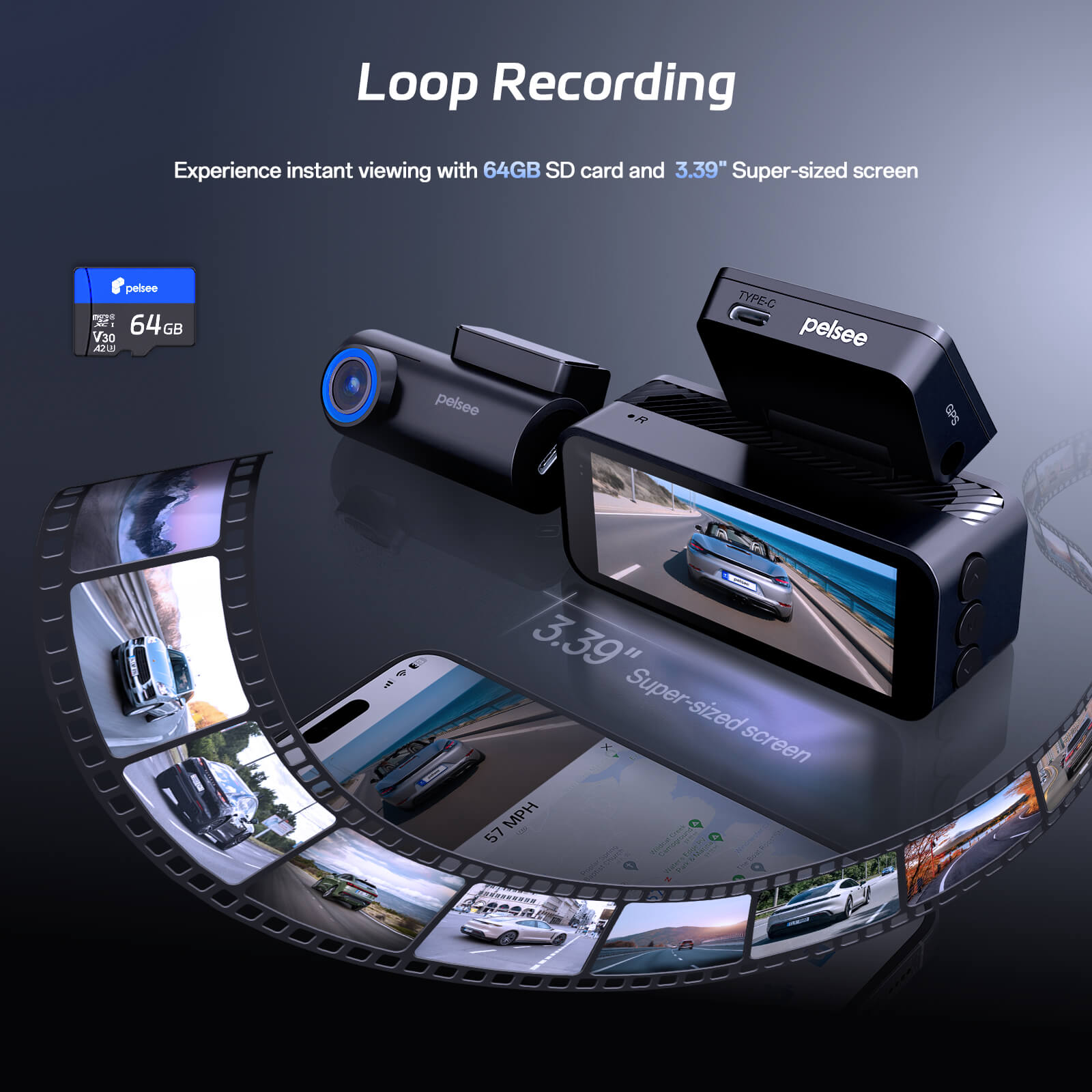 · Blazing Wi-Fi & Built-in GPS: 5.8GHz Wi-Fi enables real-time viewing, downloading, and sharing of 4K footage directly via the Pelsee Cam app. GPS tracking embeds speed/coordinates/timestamps onto videos. Forward critical clips to insurance in minutes, all without removing the SD card, enabling instant evidence access.